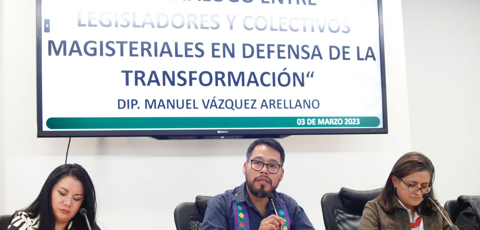 El diputado Manuel Vázquez Arellano (Morena) encabezó el primer encuentro de legisladores con colectivos magisteriales para emprender en conjunto la defensa de la «cuarta trasformación» del país.