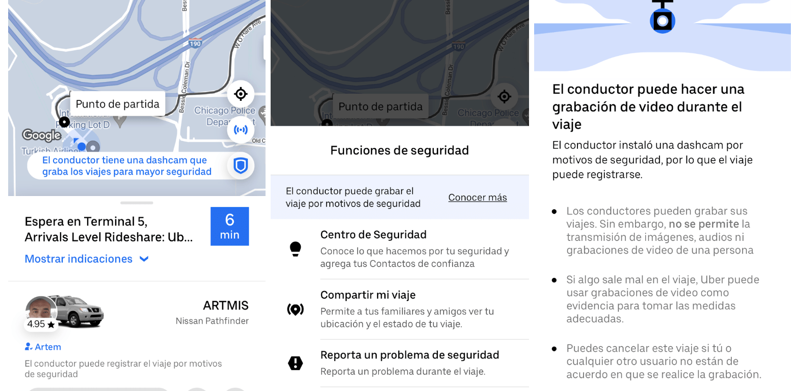 Segundo, porque desde hace un año Uber ha impulsado la adopción de cámaras de alta calidad: con doble lente para grabar tanto el interior como el exterior del vehículo, pantalla táctil, visión nocturna, micrófono y modo de estacionamiento inteligente, entre otras funcionalidades.