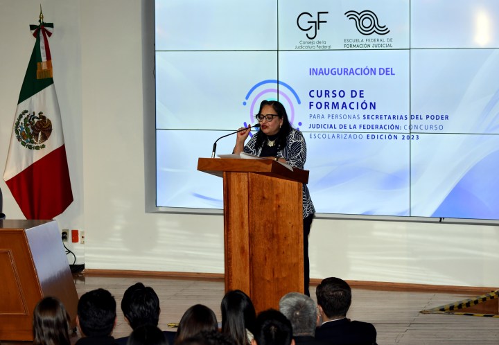 Lo anterior, durante la inauguración del curso de Formación de Personas Secretarias del Poder Judicial de la Federación (PJF) que tuvo lugar hoy en el auditorio de la Escuela Federal de Formación Judicial (EFFJ).