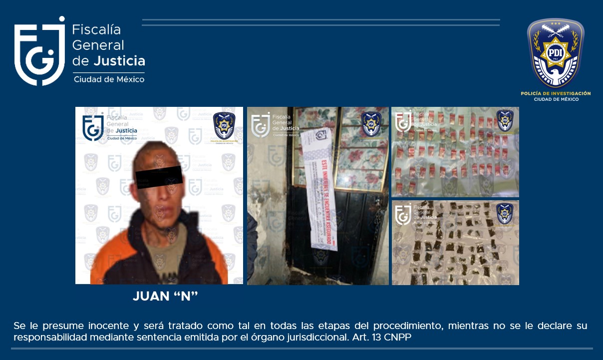 Con base en denuncias ciudadanas que alertaban sobre la posible existencia de un punto de venta de enervantes en la zona, elementos de la Policía de Investigación (PDI), adscritos a la Fiscalía de Investigación del Delito de Narcomenudeo, desplegaron tareas de campo y gabinete que permitieron ubicar el sitio, por lo que el representante social de la Coordinación General de Investigación de Delitos de Alto Impacto obtuvo el mandamiento judicial.