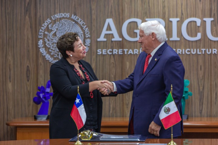 El secretario de Agricultura y Desarrollo Rural, Víctor Villalobos Arámbula y la embajadora de Chile en México, Beatriz Sánchez Muñoz, revisaron el estatus de los protocolos sanitarios entre ambas naciones para incrementar el intercambio comercial agroalimentario bilateral y explorar la posibilidad de exportar a mercados de terceros países en el Caribe y Asia.