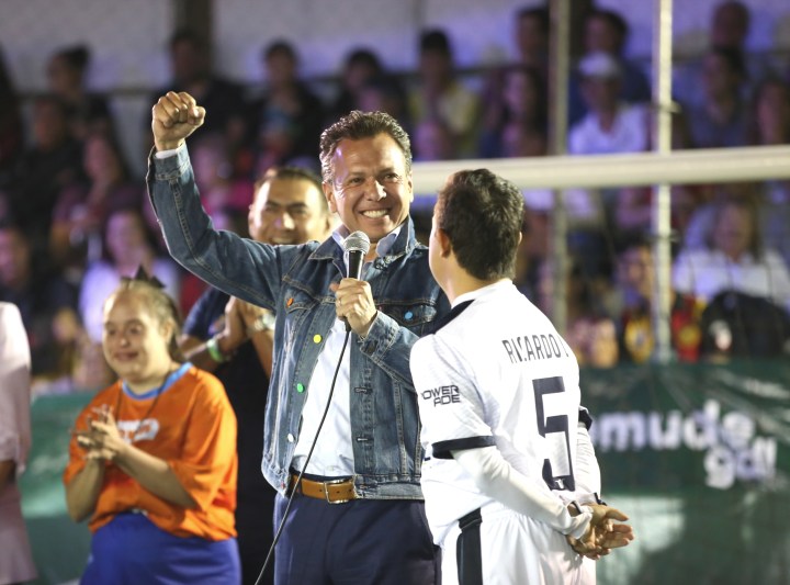 “Me da mucho gusto recibir a tantas familias tan hermosas, en pleno Centro Histórico, ¿y saben algo? Éste es el segundo año que lo hacemos exactamente en este lugar, con la bellísima Catedral de Guadalajara, la Plaza de Armas, el Palacio de Gobierno, la Presidencia Municipal. Antes nos decían ‘¿pero quién va a ir a ver el torneo de fútbol?’, y el año pasado estuvo repleto de personas, que no solamente eran familias sino (que) eran personas que se admiraban de lo bien que jugaban los equipos”, aseguró el primer edil.