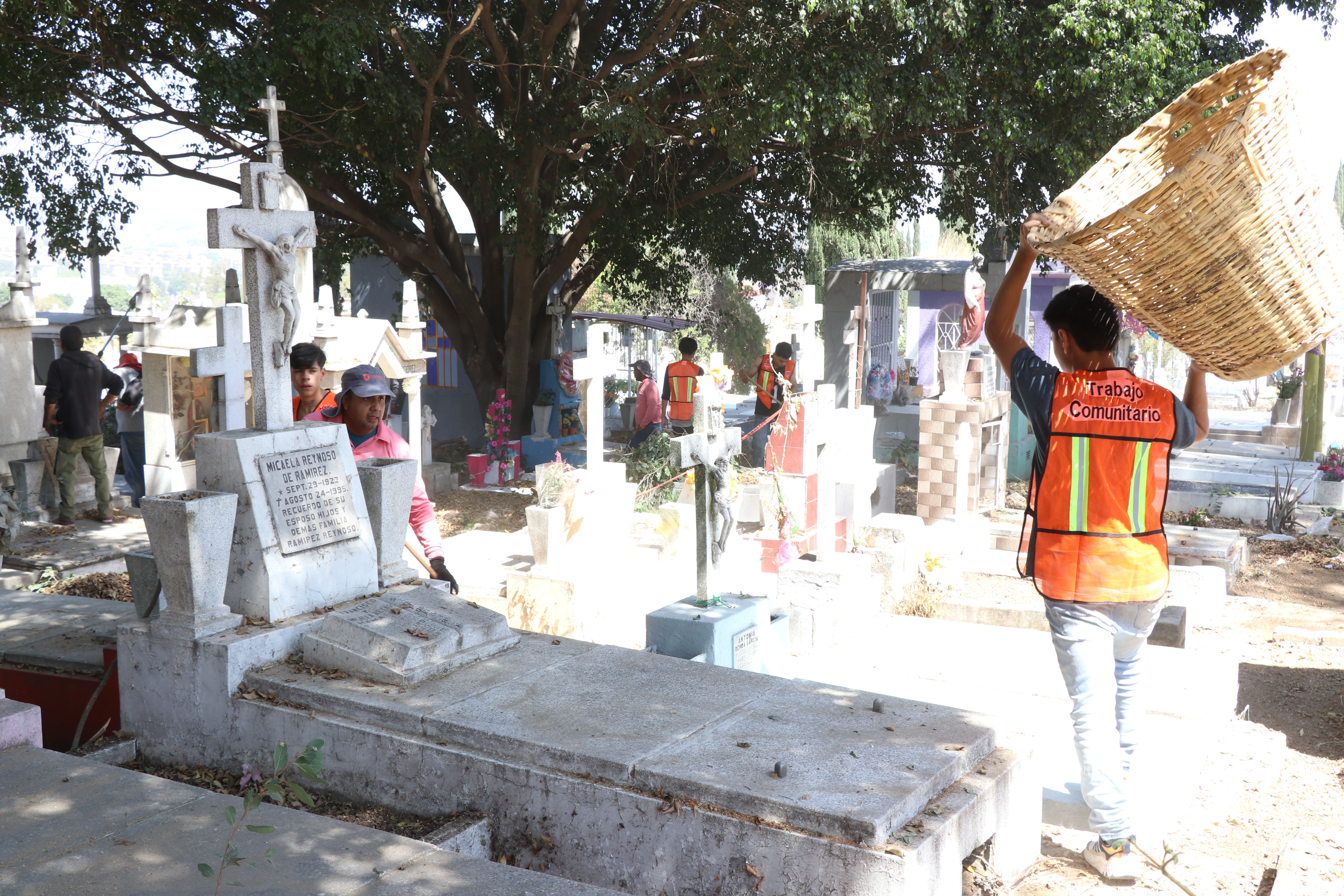 En conjunto con la fuerza operativa de Servicios Públicos Municipales —de las direcciones de Cementerios, Corresponsabilidad Social y Mejoramiento Urbano—, las y los infractores realizaron una serie de trabajos de limpieza y mantenimiento del cementerio.