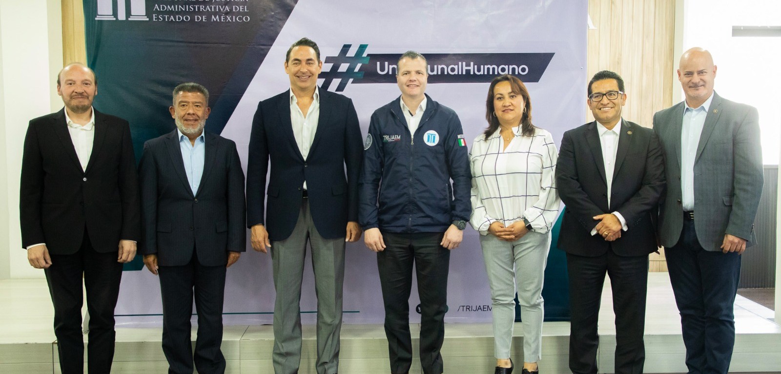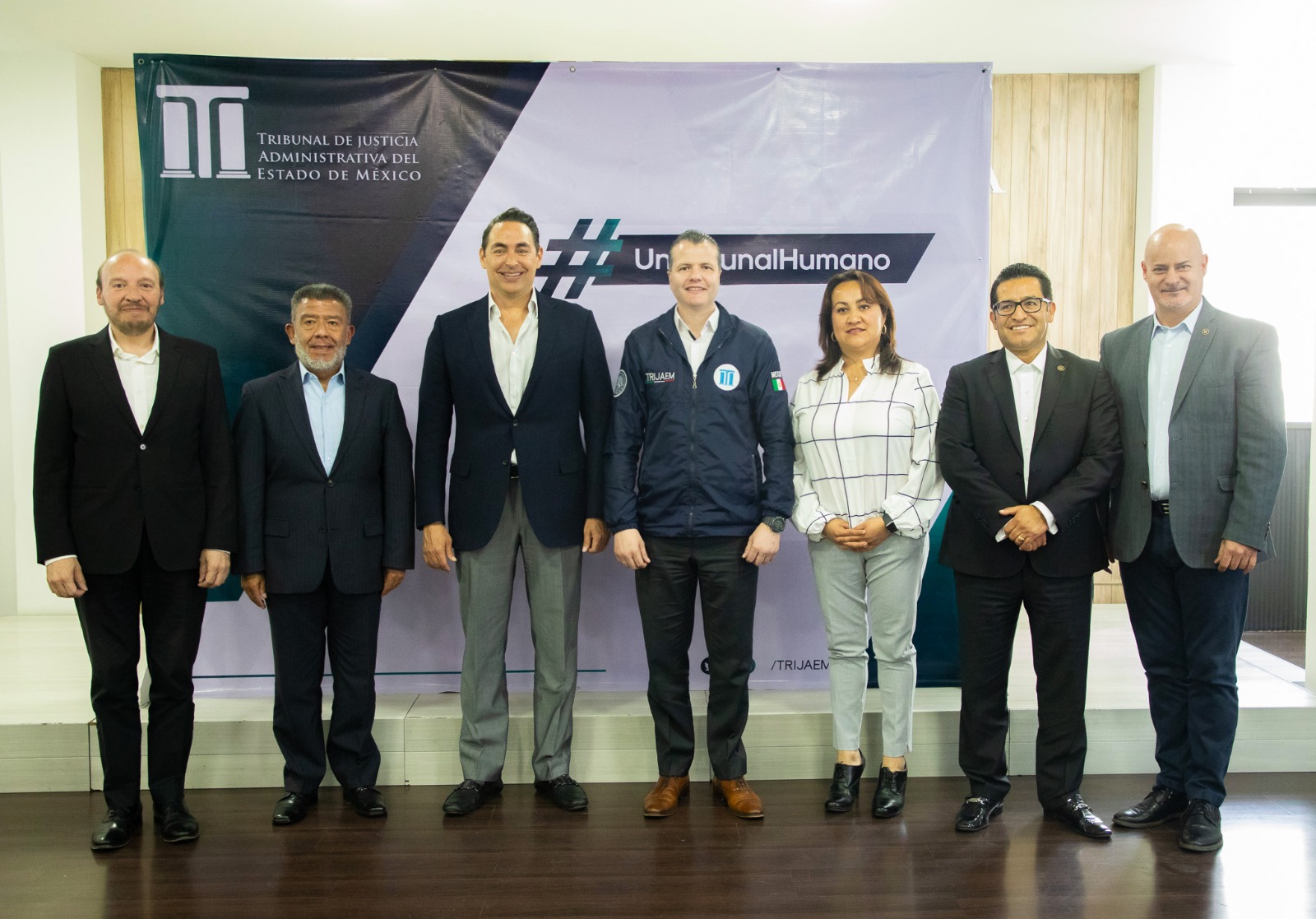 Toluca, edomex.- La firma del Convenio de Colaboración se llevó a cabo este lunes en el auditorio “Tomás Ruíz Pérez”, ubicado en la Sede Central del Trijaemy fue encabezada por el magistrado presidente del Tribunal, Gerardo Becker Ania y por el secretario Pablo Peralta García.