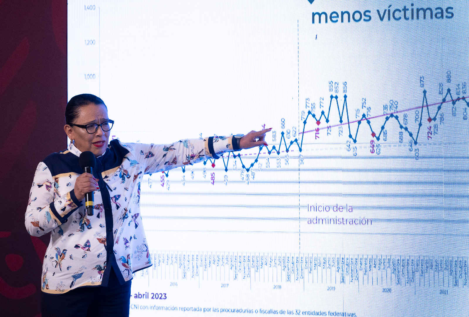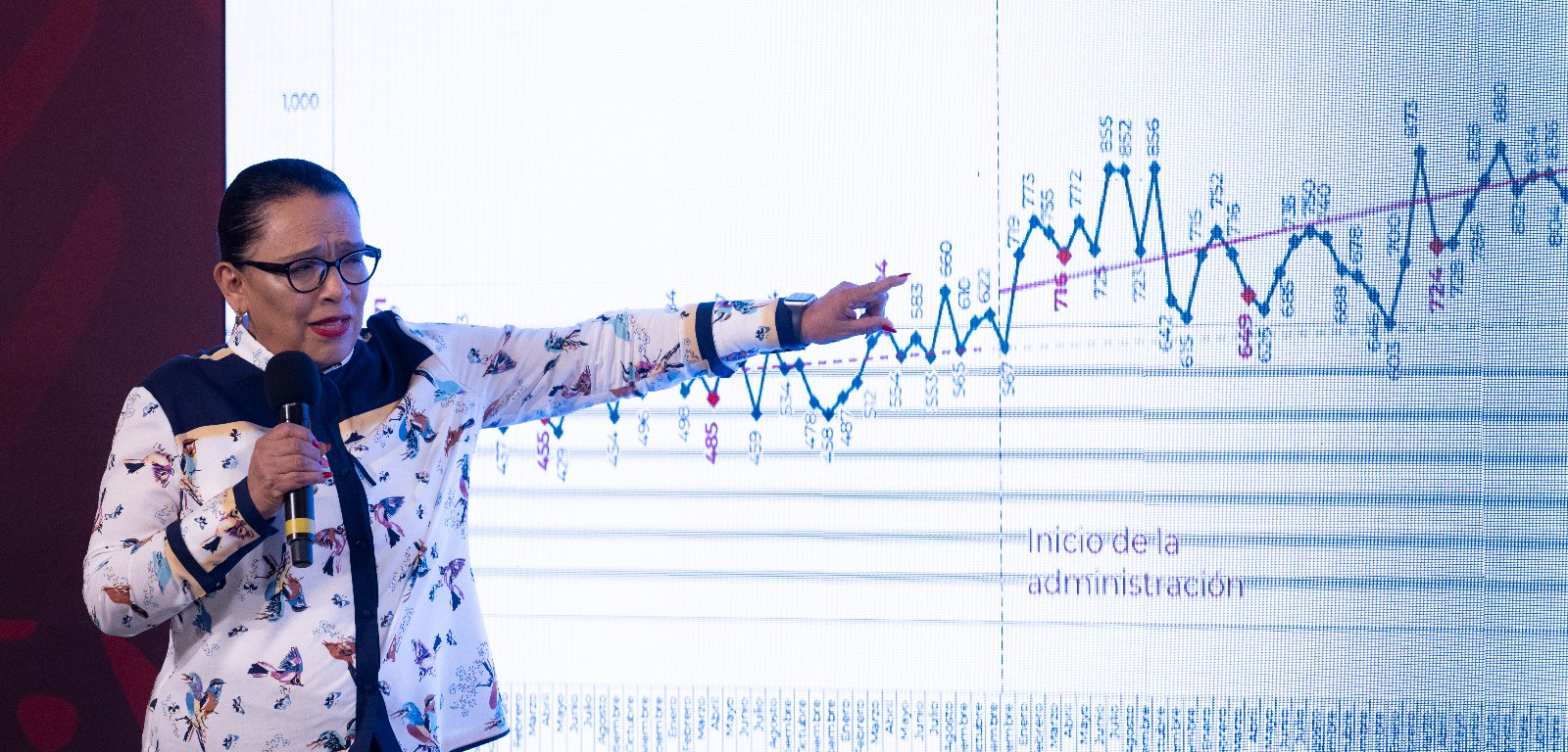 Al ofrecer un informe sobre la seguridad pública en el país, Rosa Icela Rodríguez, secretaria de Seguridad Pública, indicó que se registró una reducción en el delito de homicidio.