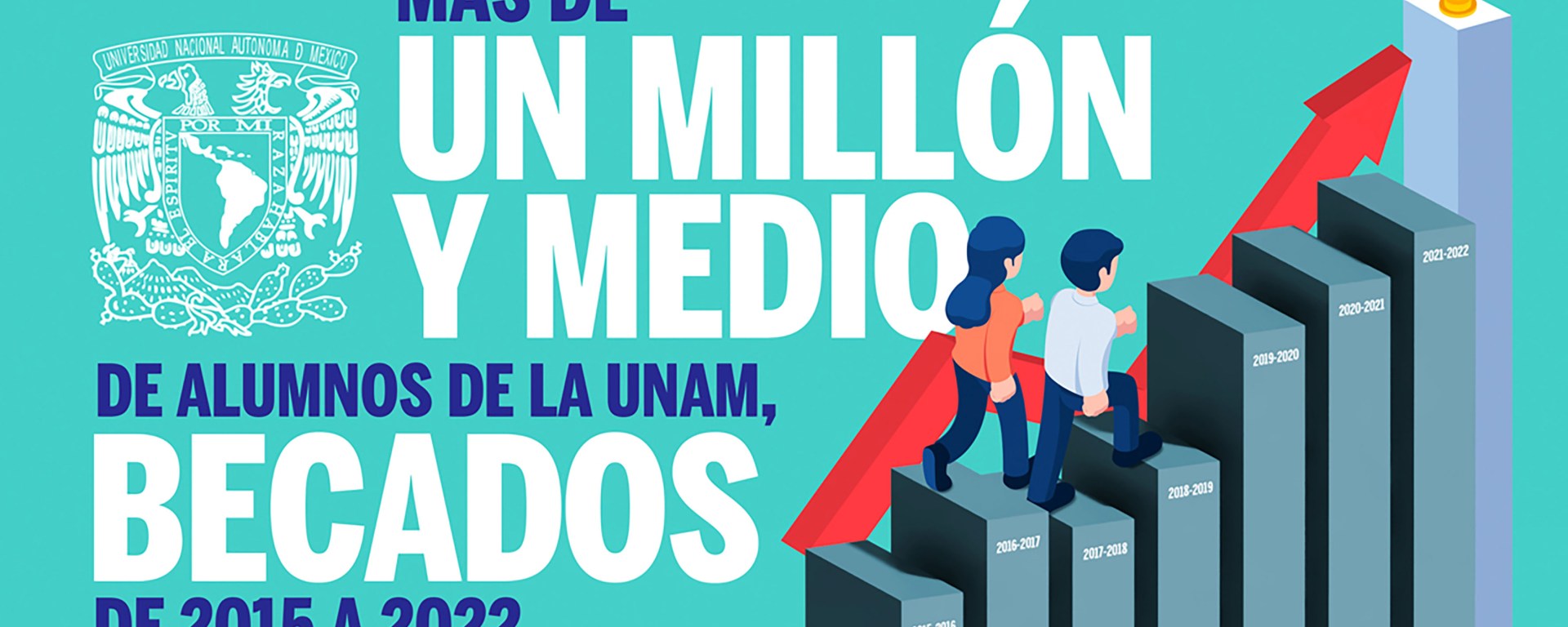 Para garantizar entre sus estudiantes una educación inclusiva, equitativa y de calidad, en el periodo 2015-2022 se pasó de 152 mil 605 becados a 290 mil 103 beneficiarios, con lo que casi se duplicó, en sólo siete años, el número de apoyos entregados por la Universidad Nacional.