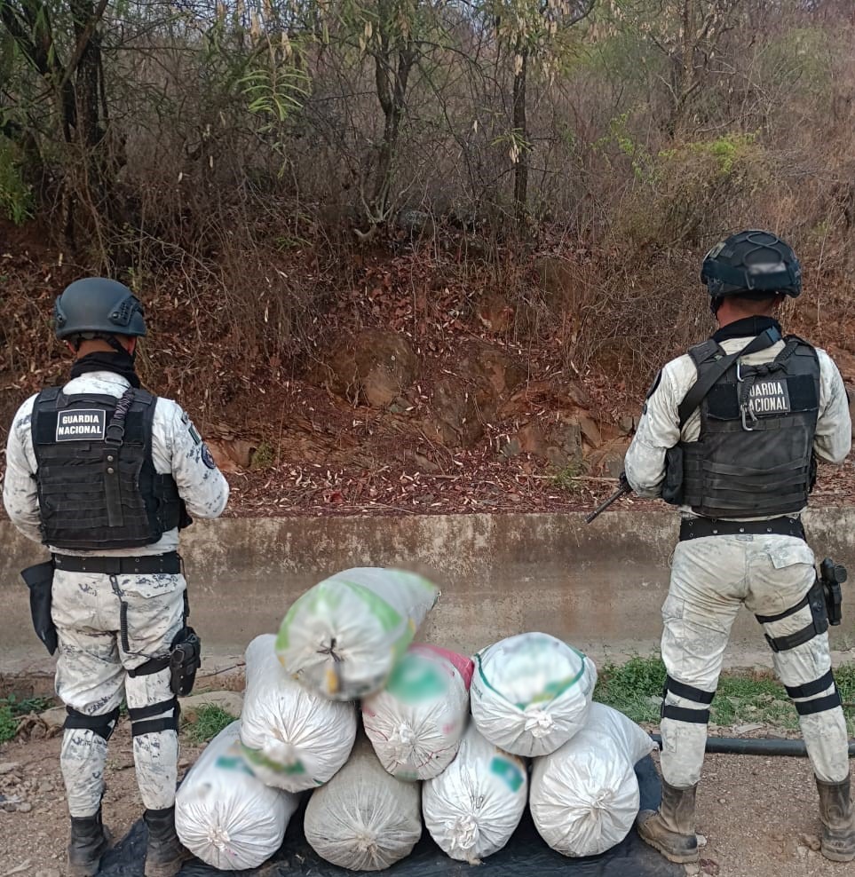 En Michoacán, integrantes de la Guardia Nacional (GN) aseguraron costales con aproximadamente 64 kg con aparente marihuana.