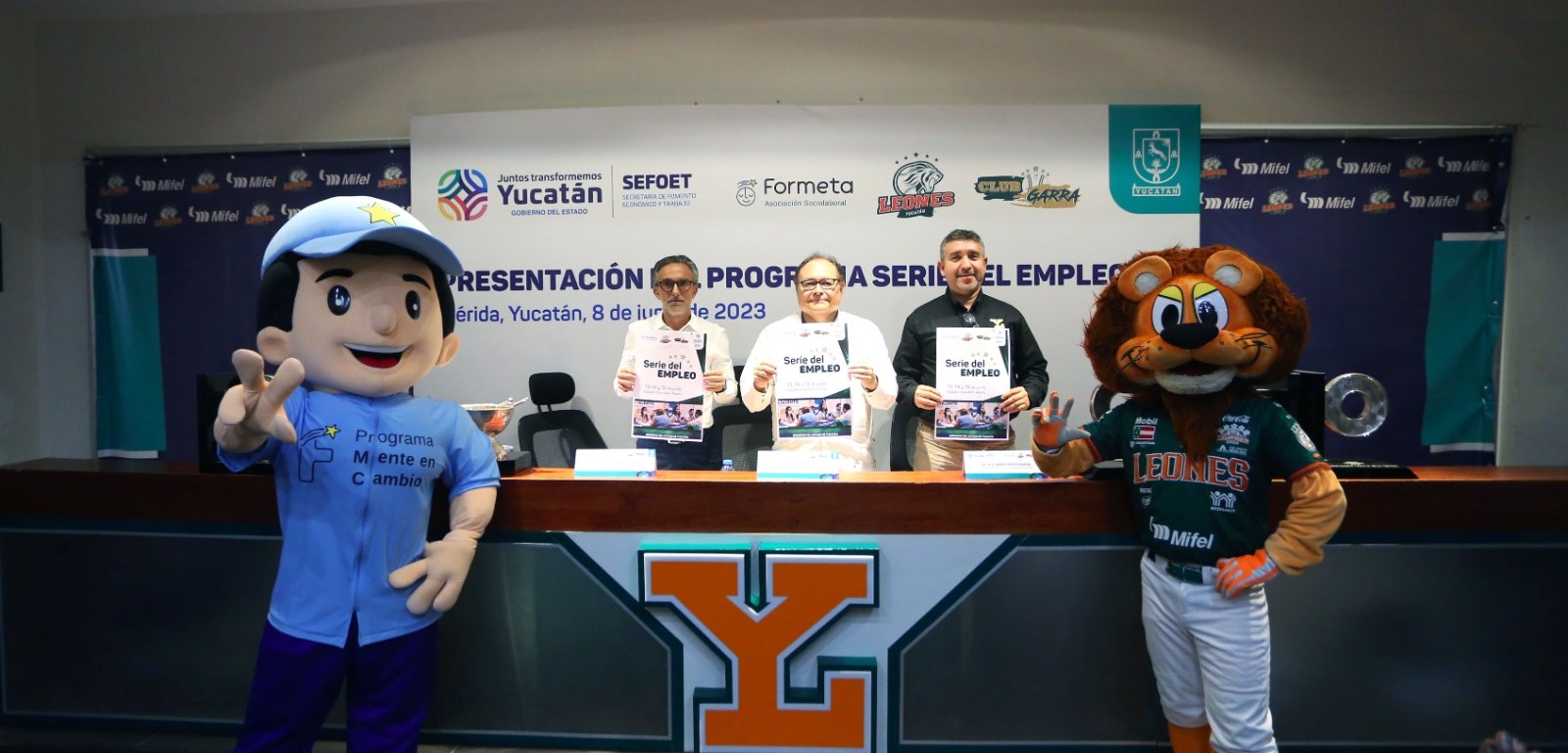 Mérida, Yucatán.- Resultado de la alianza entre la administración que encabeza el gobernador Mauricio Vila Dosal, la iniciativa privada y el sector deportivo, surge la «Serie del Empleo» para promover y reconocer la ocupación formal en la entidad, que arrancará junto con los juegos de Leones de Yucatán contra Tecolotes de Dos Laredos, los próximos 13, 14 y 15 de junio.