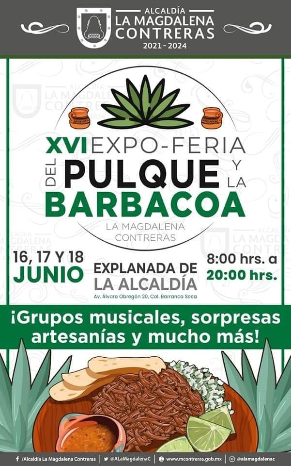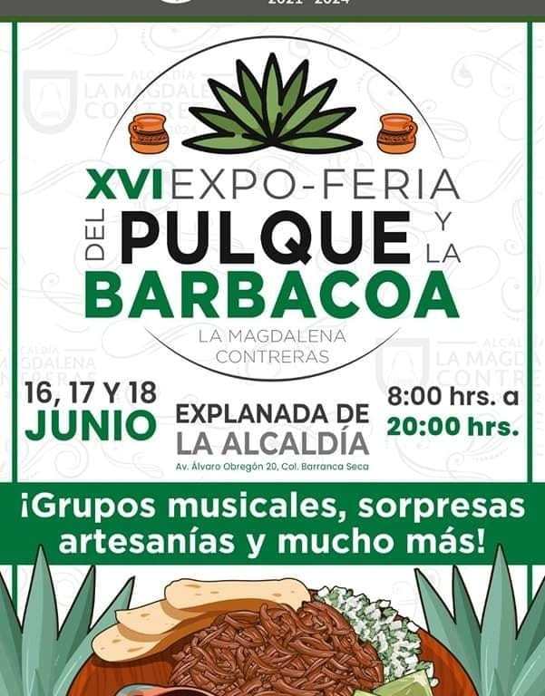 La alcaldía La Magdalena Contreras anunció la edición XVI de la Expo Feria del Pulque y la Barbacoa, que se realizará los días 16,17 y 18 de junio en la explanada de la alcaldía, en un horario de 8 de la mañana a 8 de la noche.