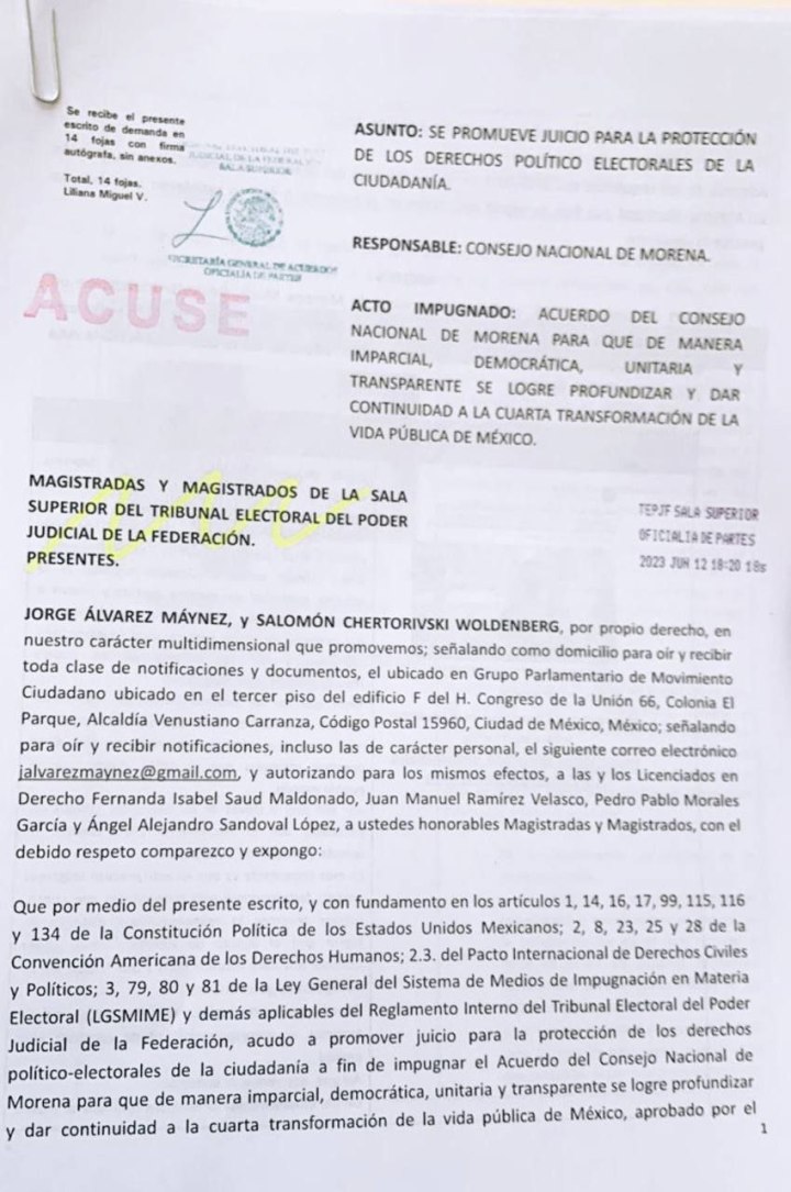 El diputado Jorge Álvarez Máynez, coordinador de la bancada del partido Movimiento Ciudadano, junto a Salomón Chertorivski, impugnaron el acuerdo que presentó Morena para la designación de sus candidaturas, al constituir un proceso de precampaña fuera de la ley y que violenta la Constitución. Legalmente, las precampañas inician en la tercera semana de noviembre.