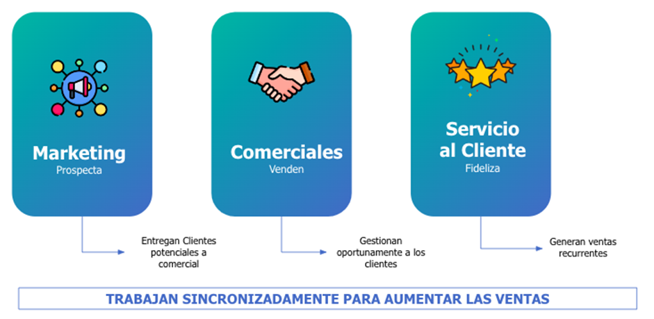 - Alineación de equipos: además de vendedores, gerentes o coordinadores de venta, el CRM ayuda a vender más, generar prospectos y fidelizar clientes.