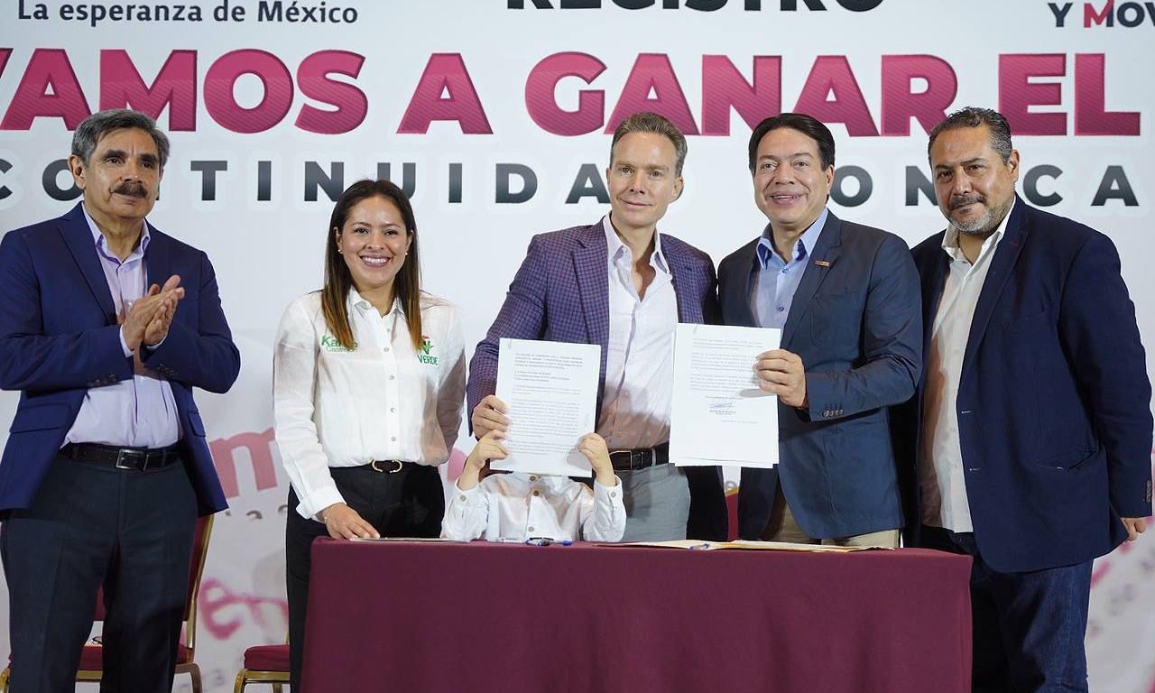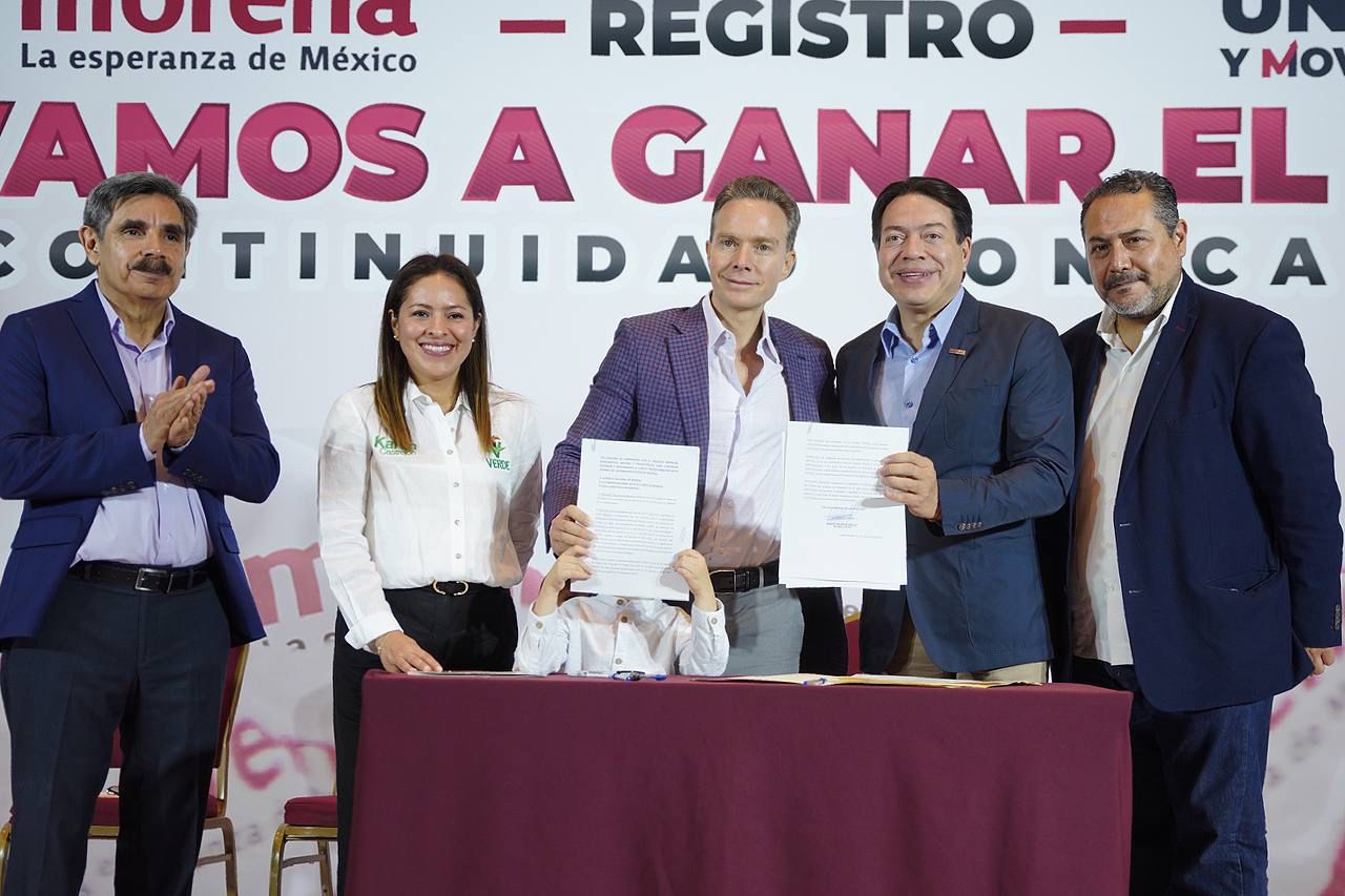 Asimismo, Mario Delgado anunció que el Partido Verde Ecologista de México (PVEM) designó a Manuel Velasco como aspirante, por lo que el día de hoy llevó a cabo su registro para participar en el proceso interno de organización de Morena.