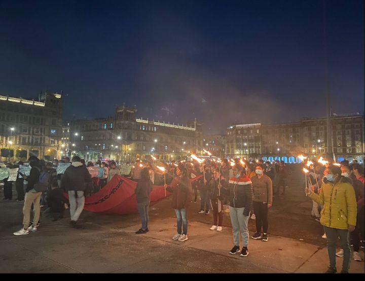 Estudiantes de la Escuela Normal Rural «Mactumactzá» de Chiapas se manifestaron en las inmediaciones del Palacio Nacional con antorchas encendidas y advirtieron que si no se resuelven sus demandas, “haremos quemazón”.
