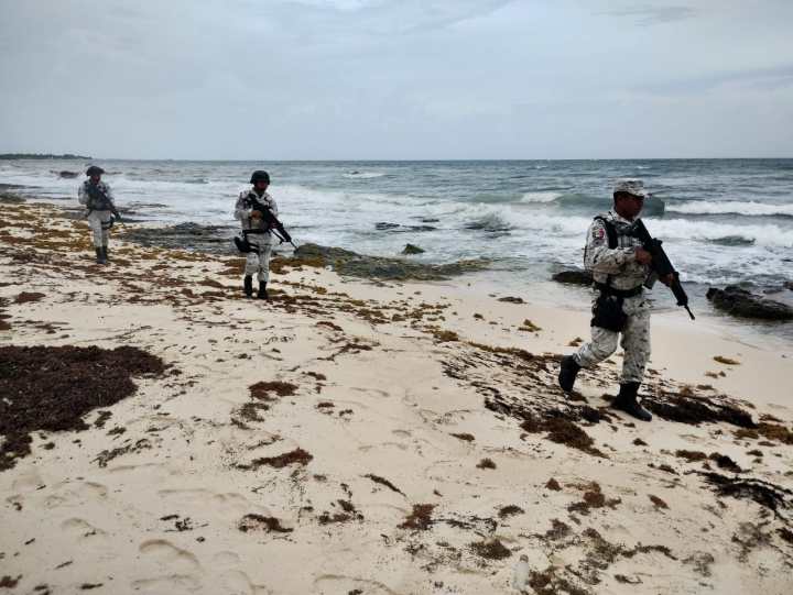 El hallazgo se registró cuando guardias nacionales realizaban recorridos de inspección, seguridad y prevención del delito en el área de playa de la zona turística, a la altura de la carretera costera Tulum-Boca Paila.