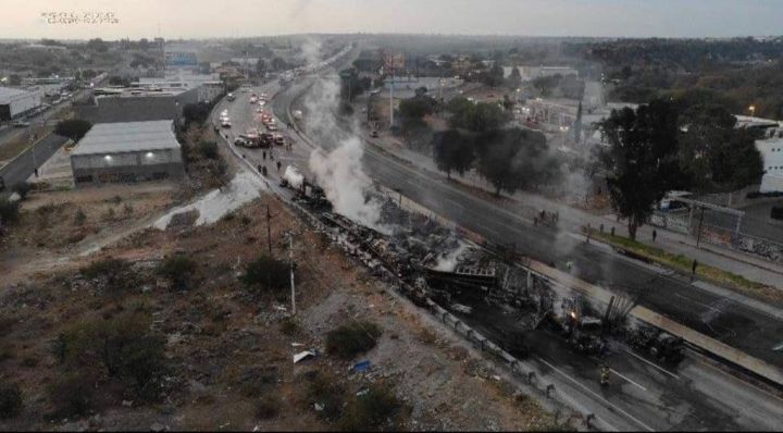 De acuerdo con los primeros reportes, se trata de un choque entre al menos 10 vehículos a la altura de San Juan del Río, en el kilómetro 161+200, lo que provocó la explosión e incendio de un tráiler, así como de otras unidades.