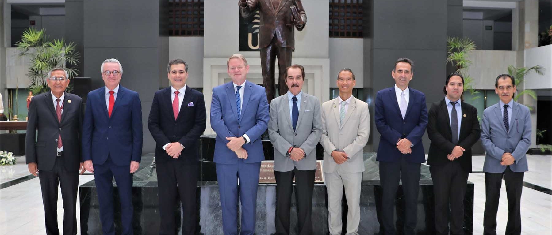 El embajador fue recibido el rector Antonio Leaño Reyes, y lo acompañaron Antonio Leaño del Castillo, vicerrector; Hugo de la Rosa Peñaloza, vicerrector académico; Alfonso Petersen Farah, vicerrector de Ciencias de la Salud; Fernando Torres de la Torre, director de Internacionalización; y Ricardo Beltrán Rojas, secretario general.
