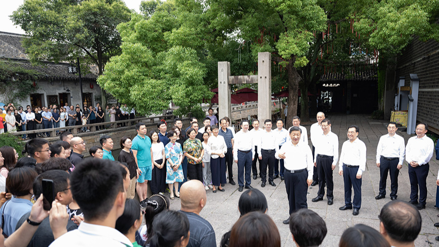 Del 5 al 7 de julio, acompañado por Xin Changxing, secretario del Comité Provincial de Jiangsu del PCCh, y Xu Kunlin, gobernador de la provincia, Xi Jinping visitó sucesivamente las ciudades de Suzhou y Nanjing, donde realizó investigaciones en lugares como un parque industrial, empresas, un bloque histórico y cultural y un laboratorio científico.