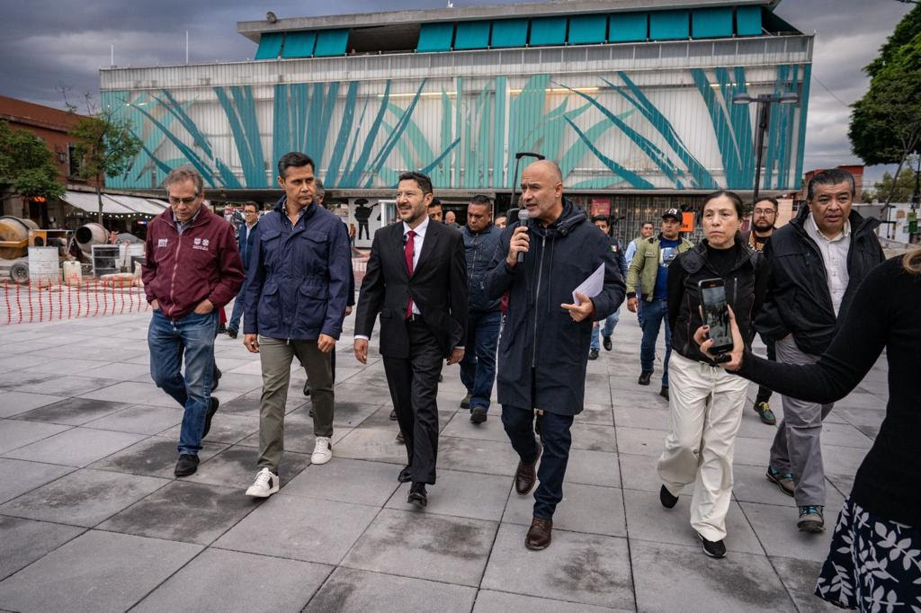 La obra, que lleva un 49% de avance, cuenta con una inversión de 38 millones de pesos. Martí Batres resaltó que este proyecto fortalece el tejido social alrededor de esta emblemática plaza turística y cultural.