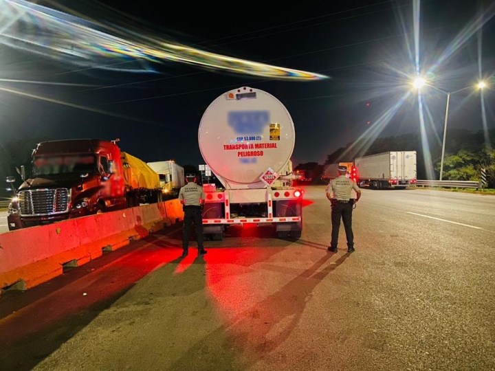 Integrantes de la Guardia Nacional (GN) detuvieron al conductor de un tractocamión que transportaba aproximadamente 54 mil litros de combustible, sin la documentación que acreditara su origen legal ni transportación.