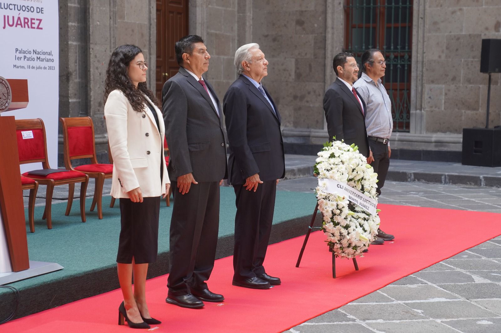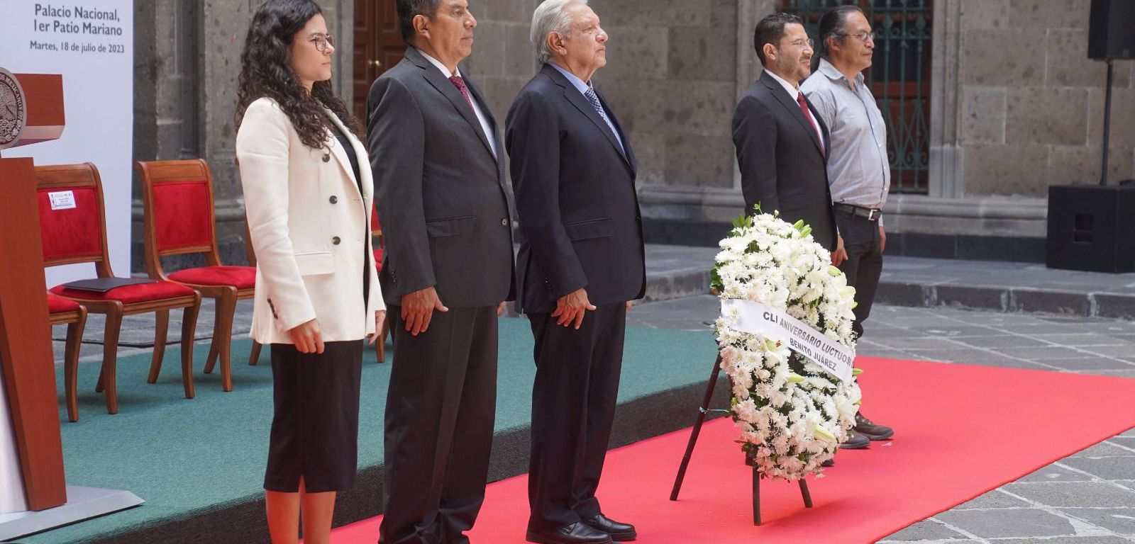 El presidente Andrés Manuel López Obrador encabezó en Palacio Nacional la ceremonia por el 151 aniversario luctuoso de Benito Juárez García.