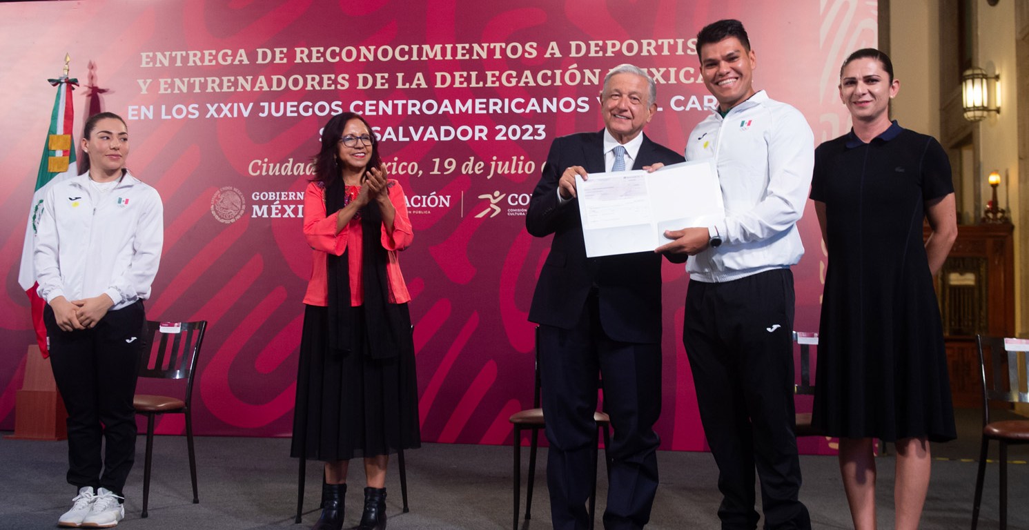Con la entrega de reconocimientos, el presidente Andrés Manuel López Obrador celebró a la delegación de deportistas y entrenadores que colocó a México en el primer lugar de los XXIV Juegos Centroamericanos y del Caribe, en San Salvador.