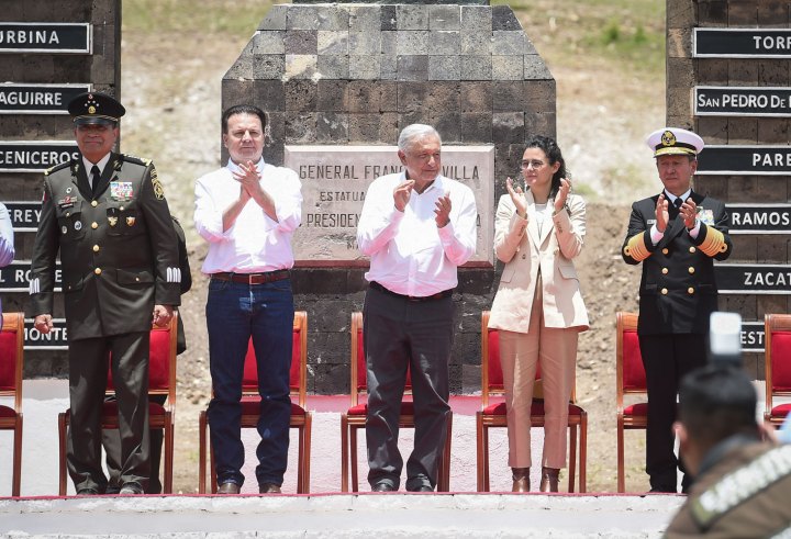 El presidente Andrés Manuel López Obrador encabezó en San Juan del Río, Durango, la ceremonia por el aniversario luctuoso de Francisco Villa.