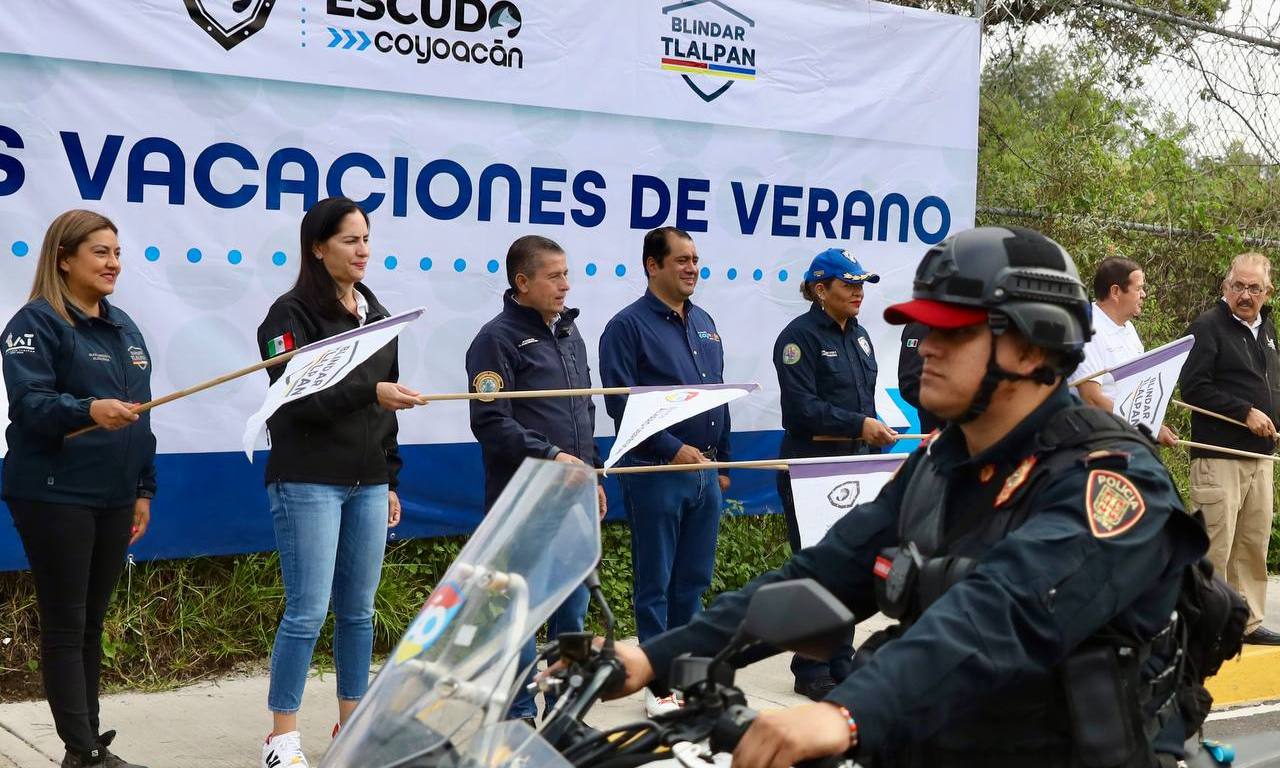 Como parte del reforzamiento para la seguridad en las alcaldías Álvaro Obregón, Coyoacán y Tlalpan, los alcaldes Lía Limón García, Giovani Gutiérrez Aguilar y Alfa González Magallanes, respectivamente, dieron el banderazo de salida al operativo “Blindamos tus Vacaciones de Verano 2023”.
