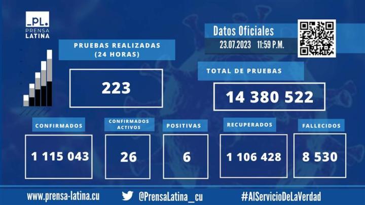 El reporte precisa que 26 ciudadanos están enfermos con Covid-19 en todo el país, mientras que la cifra de fallecidos se mantiene en ocho mil 530. –sn–
