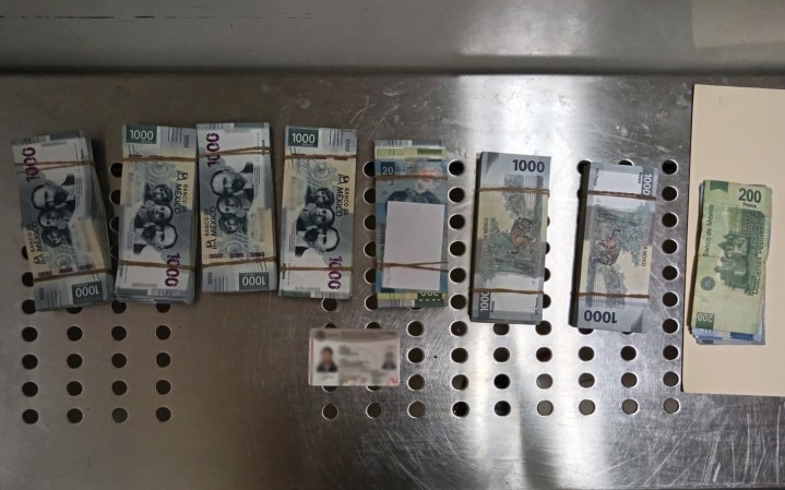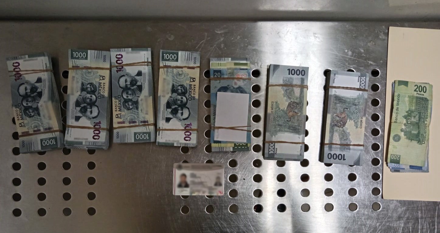 El personal de la Guardia Nacional se trasladó al sitio donde se solicitó al viajero identificarse y autorización para llevar a cabo una inspección al equipaje de mano que portaba, accediendo voluntariamente. Durante el registro se localizaron siete paquetes con billetes de 20, 200, 500 y 1000 pesos mexicanos; al contabilizarlos se obtuvo la cantidad de 705 mil 480 pesos.
