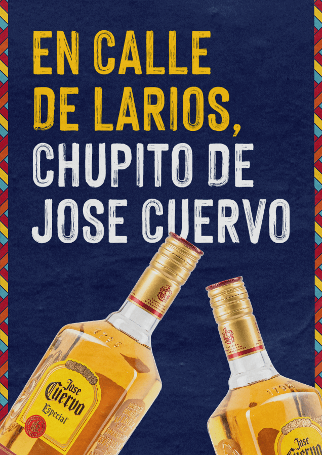 El colofón de esta acción de marketing de guerrilla es la creación de una lona frente a la Malagueta, que deja claro el objetivo de la marca de tequila durante la feria: que en la famosa calle malagueña, Calle Larios, se acabe brindando con José Cuervo, el tequila más vendido.