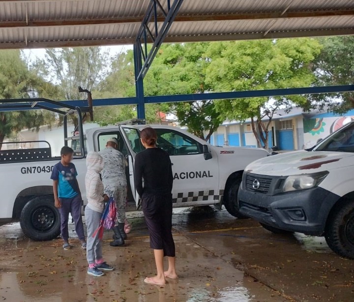 Los guardias nacionales, en coordinación con integrantes del Ejército Mexicano, la Secretaría de Marina, la Coordinación Nacional de Protección Civil, así como con autoridades estatales, apoyan en el traslado a los albergues a integrantes de aquellas familias cuyas viviendas sufrieron daños estructurales o se encuentran en zonas inundadas.