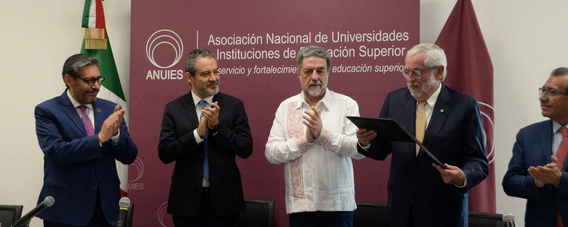 La Asociación Nacional de Universidades e Instituciones de Educación Superior (ANUIES) ha rendido un emotivo reconocimiento al rector de la Universidad Nacional Autónoma de México (UNAM), Enrique Graue Wiechers, por su destacado liderazgo, labor y acciones a favor de la educación superior durante el tiempo en que representó a la UNAM en el Consejo Nacional de esta prestigiosa asociación.