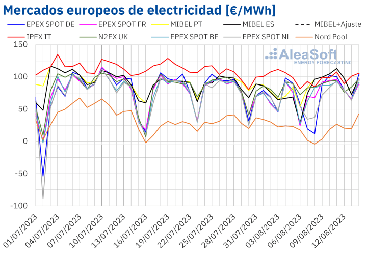 En la semana del 7 de agosto, la demanda eléctrica se comportó a la baja en la mayoría de los mercados europeos analizados en AleaSoft Energy Forecasting respecto a la semana anterior.