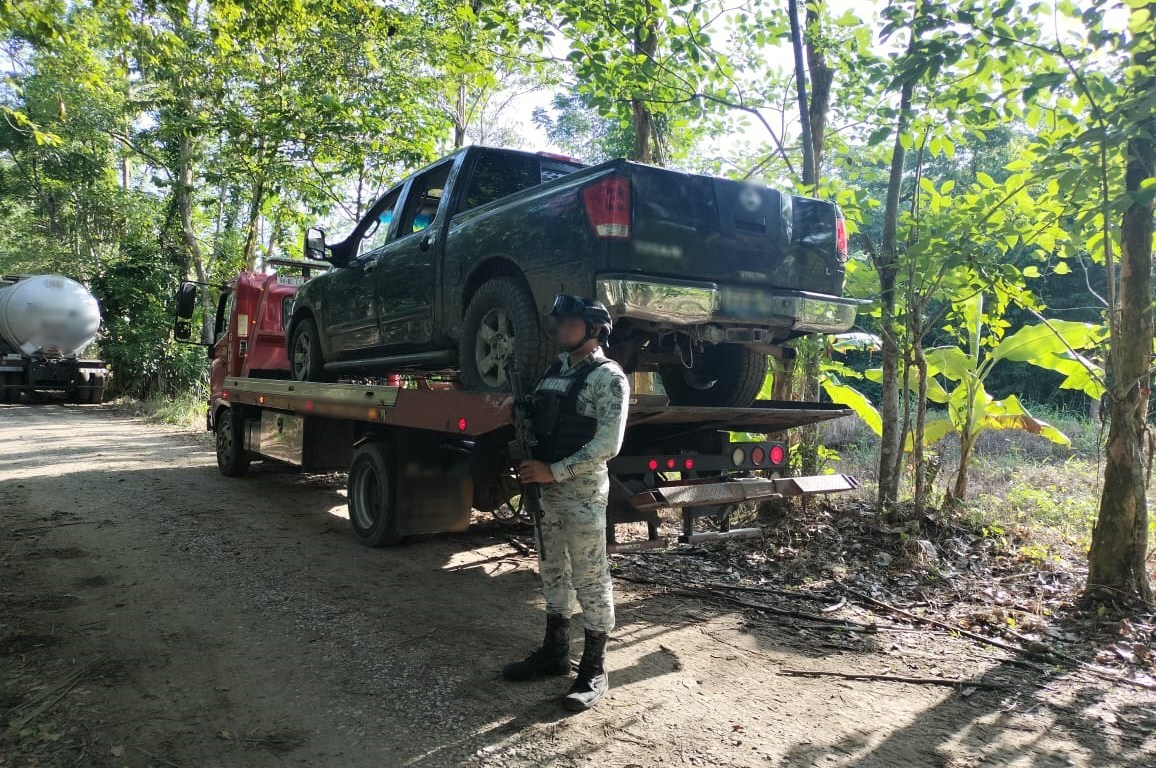 El hallazgo se registró cuando guardias nacionales realizaban patrullajes preventivos en las inmediaciones del poblado Carlos A. Madrazo, en el municipio de Huimanguillo, donde notaron movimiento de vehículos pesados.