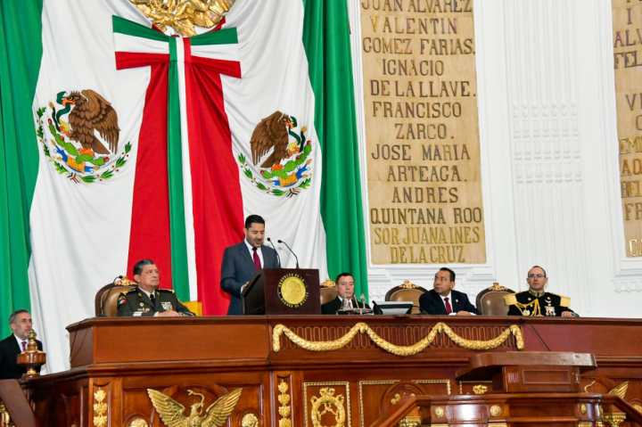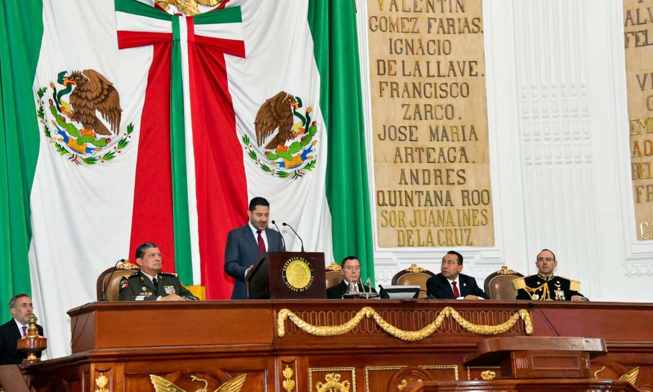 El presidente de la mesa directiva Fausto Manuel Zamorano Esparza, encabezó la ceremonia que contó con la participación del secretario de la Defensa Nacional, Luis Cresencio Sandoval González, y el jefe de gobierno de la ciudad de México, Martí Batres Guadarrama.