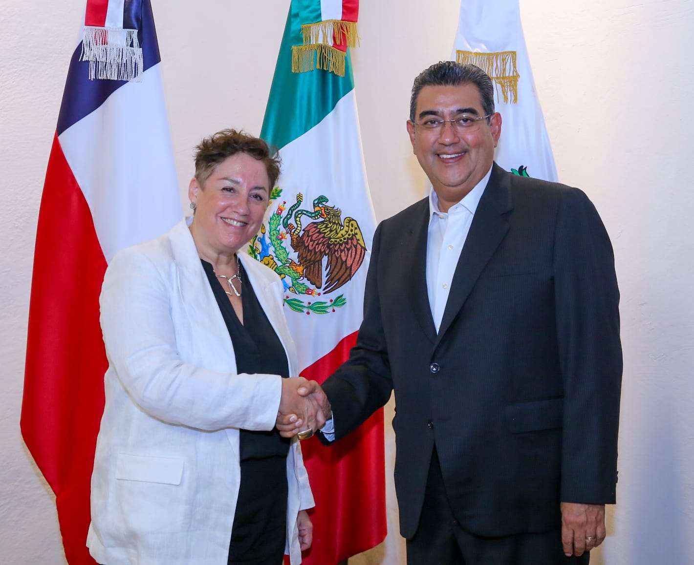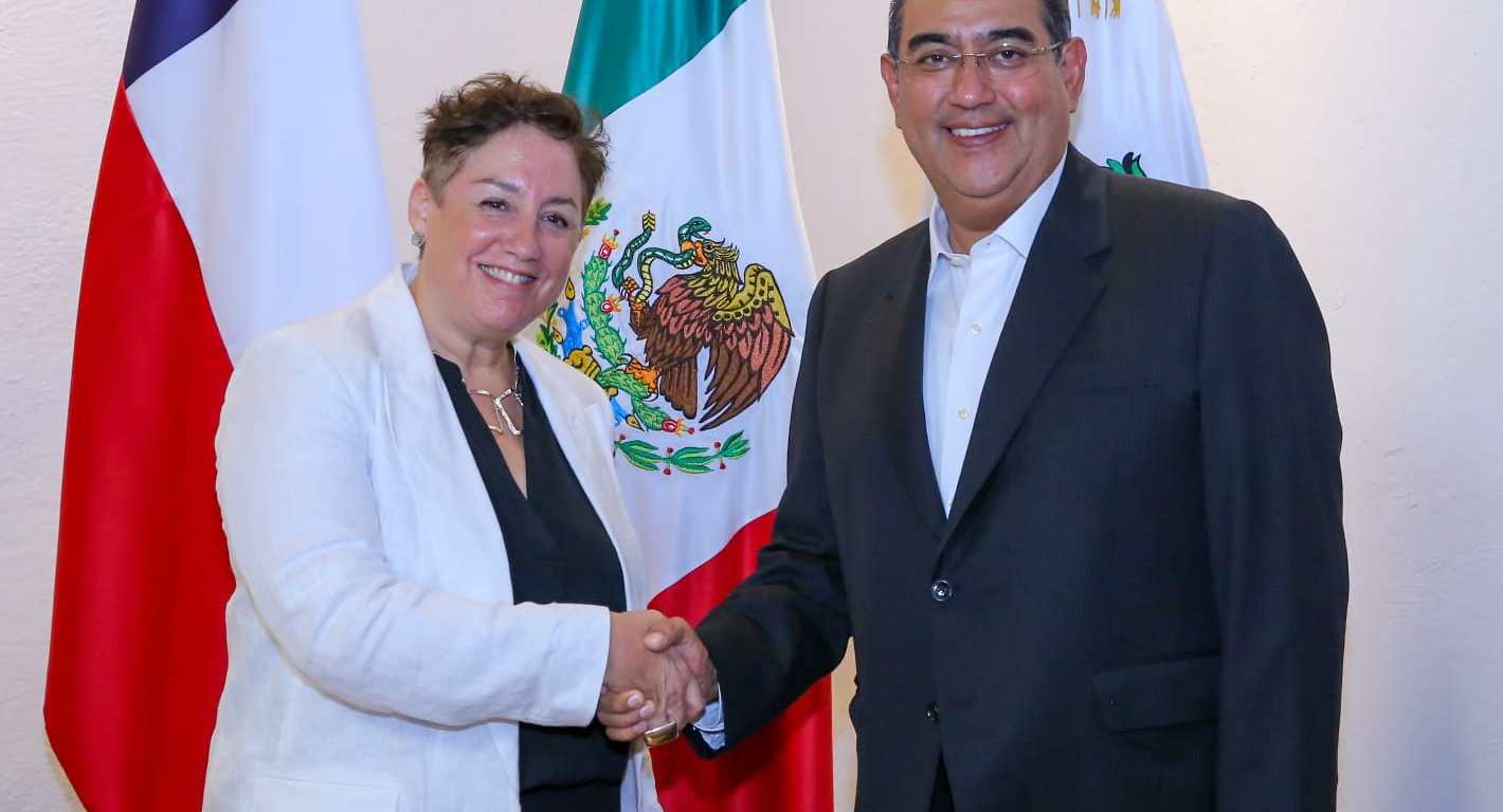 Puebla, Puebla.- En busca de fomentar la inversión extranjera y consolidar lazos diplomáticos, el gobernador Sergio Salomón se reunió con la embajadora de Chile en México, Beatriz Sánchez Muñoz.