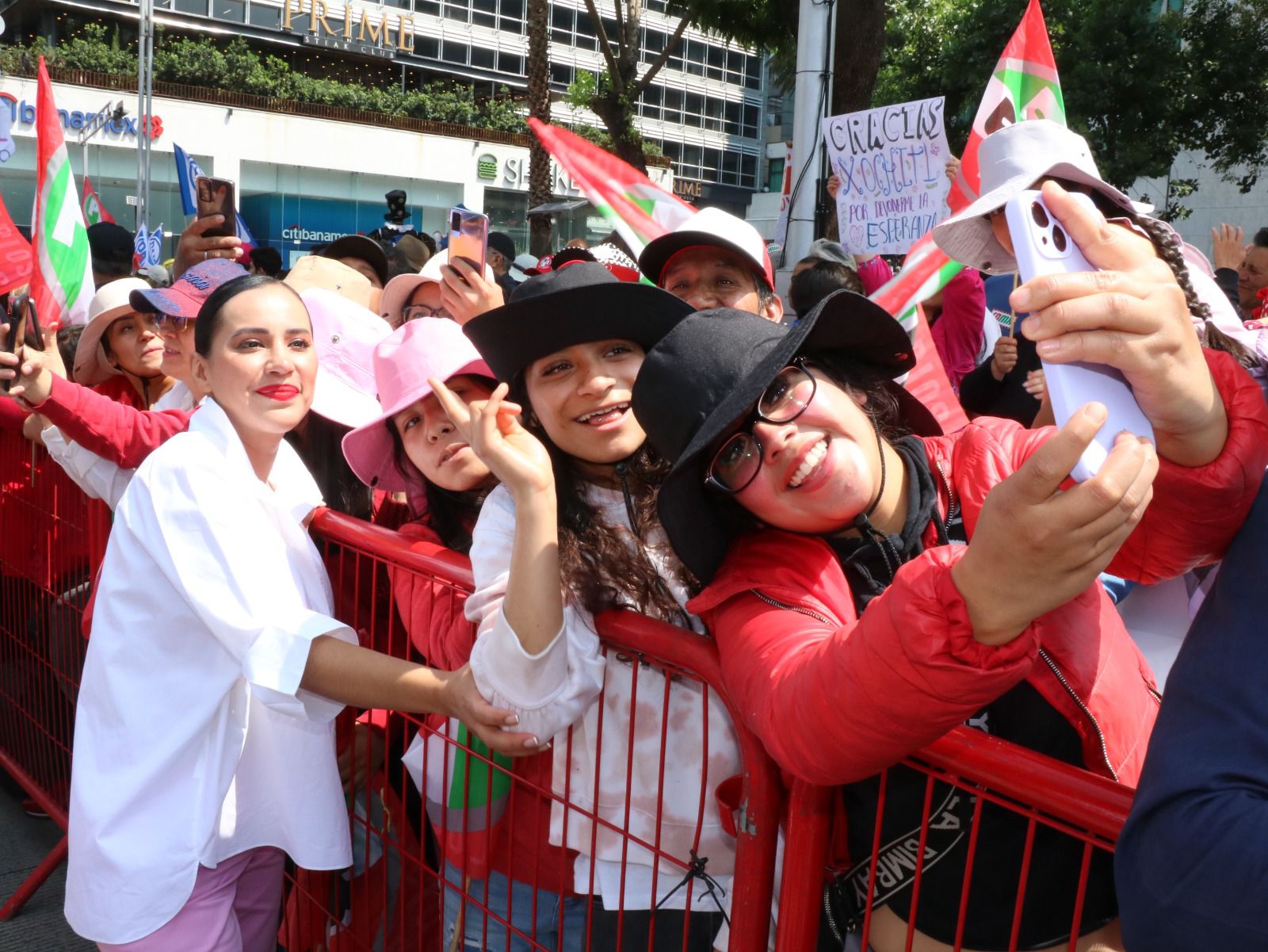 Acompañando a Gálvez en el evento central en el Ángel de la Independencia, Sandra Cuevas resaltó que este día es histórico, ya que la sociedad civil y los partidos que conforman el Frente Amplio por México han depositado su confianza en Xóchitl Gálvez para liderar la unificación, pacificación y desarrollo de México.