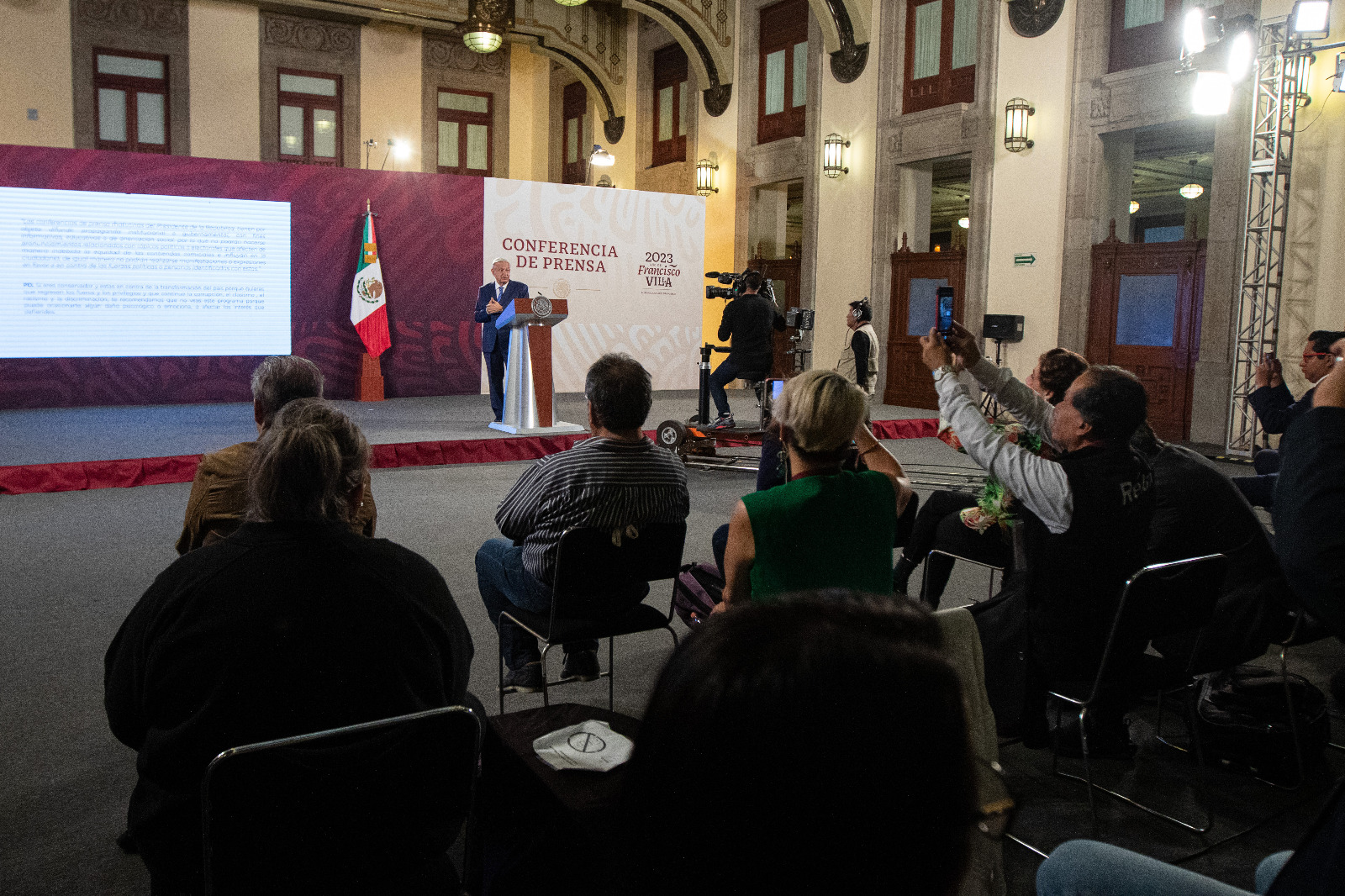 Tras leer el mensaje ordenado por el INE, el Presidente dictó la anotación que también estará antes de las mañaneras.