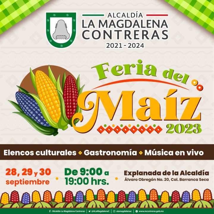 Esta feria se realiza como parte del impulso económico a los productores locales de la presente administración del alcalde Luis Gerardo Quijano que se llevará a cabo del 28 al 30 de septiembre en la explanada de la alcaldía La Magdalena Contreras, y tiene como objetivo principal honrar la tradición milenaria del maíz en la región contrerense.