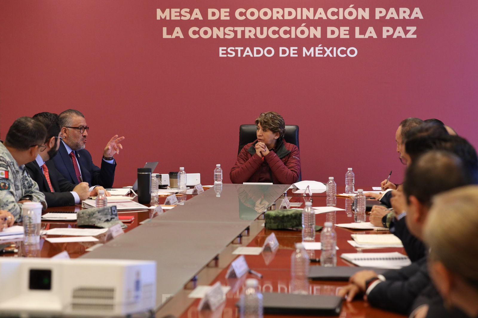 Toluca, edomex.- En una reunión de la mesa de coordinación para la construcción de la paz, autoridades de seguridad a nivel federal, estatal y municipal presentaron un informe detallado sobre la situación de seguridad en el estado de México a la gobernadora Delfina Gómez Álvarez.