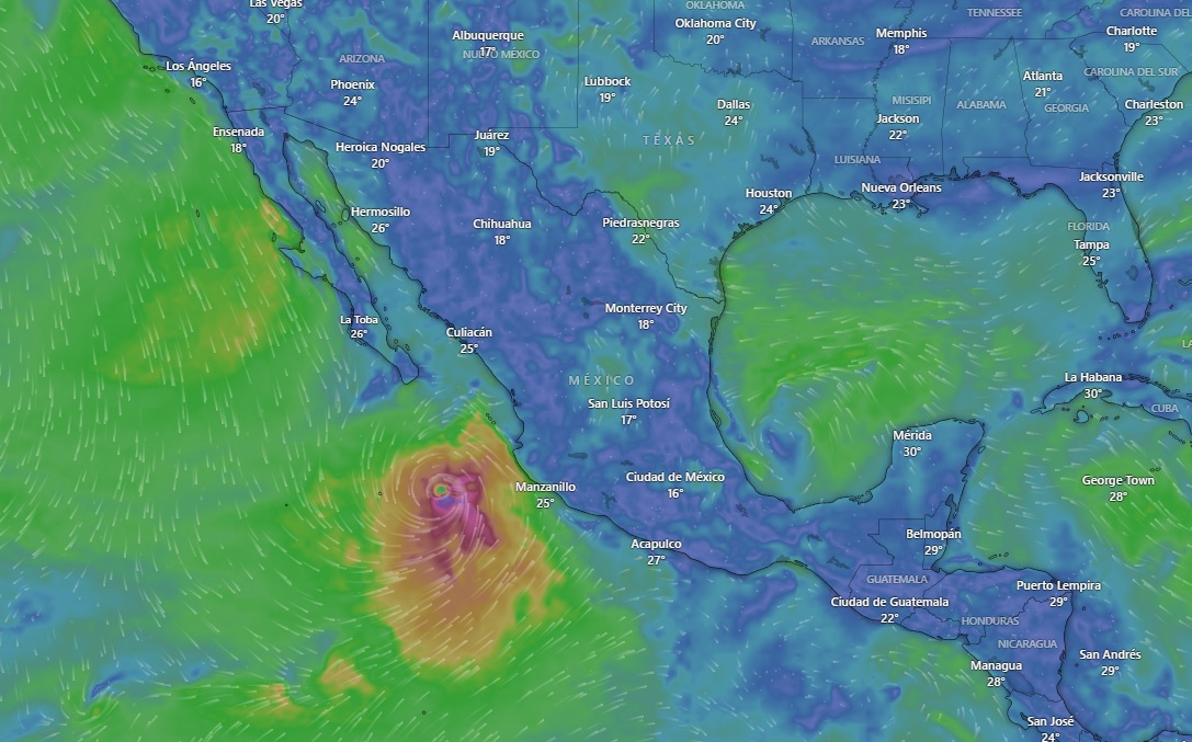 El huracán Lidia, ahora de categoría 2 en la escala Saffir-Simpson, se desplaza hacia la costa de Jalisco y Nayarit.