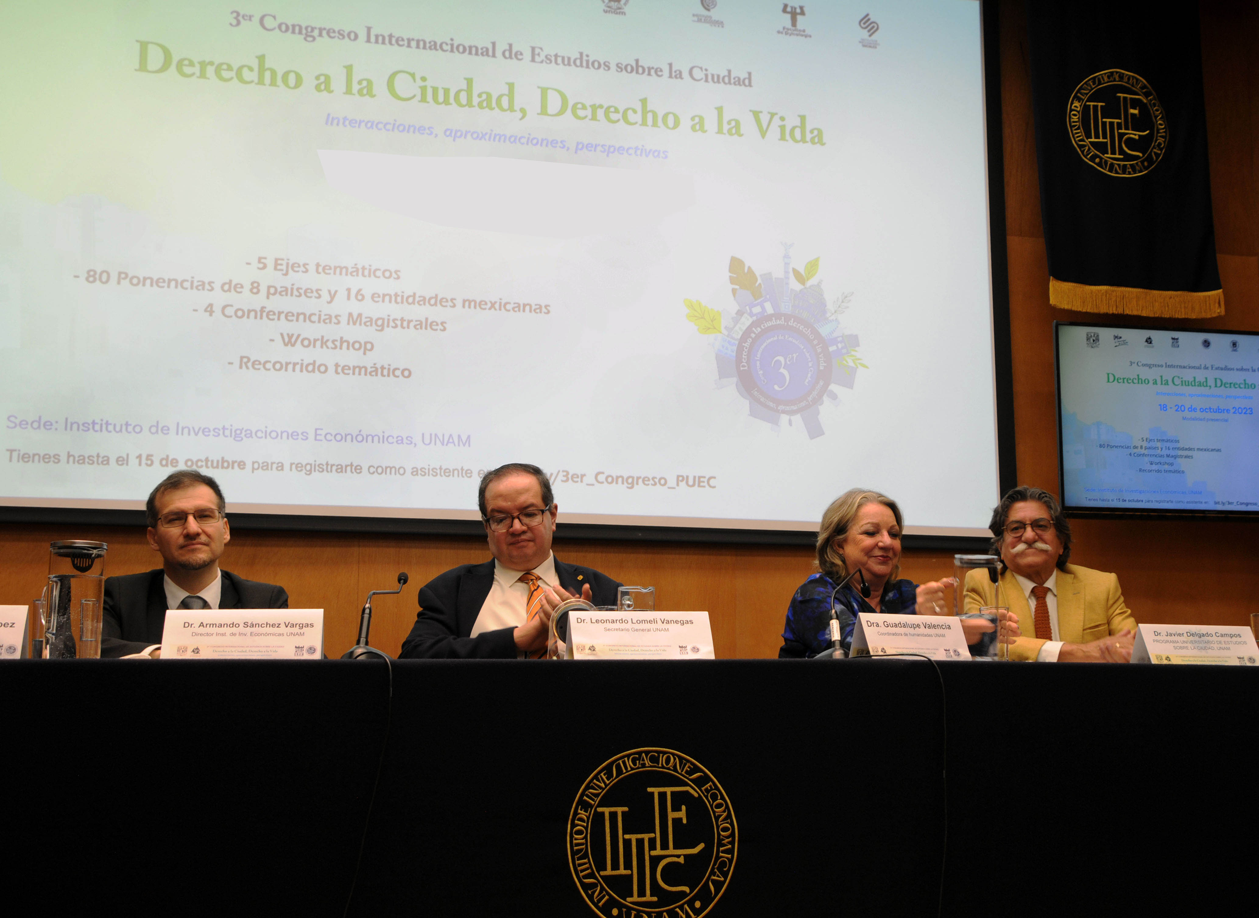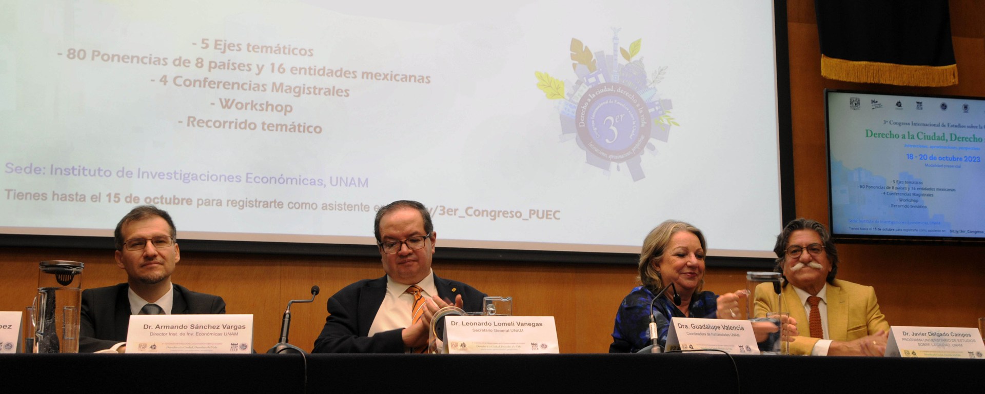 El director del Programa Universitarios de Estudios sobre la Ciudad, Javier Delgado Campos, expresó su agradecimiento por el apoyo al congreso, que se coorganiza con varios institutos y facultades de la UNAM. Delgado Campos subrayó la importancia de hacer propuestas viables y reflexionar sobre las ciudades y sus habitantes en un momento desafiante tanto en México como en el mundo.