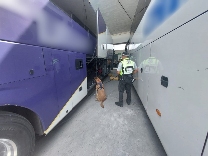 Perros de la Guardia Nacional identifican droga en autobús de pasajeros, un arrestado