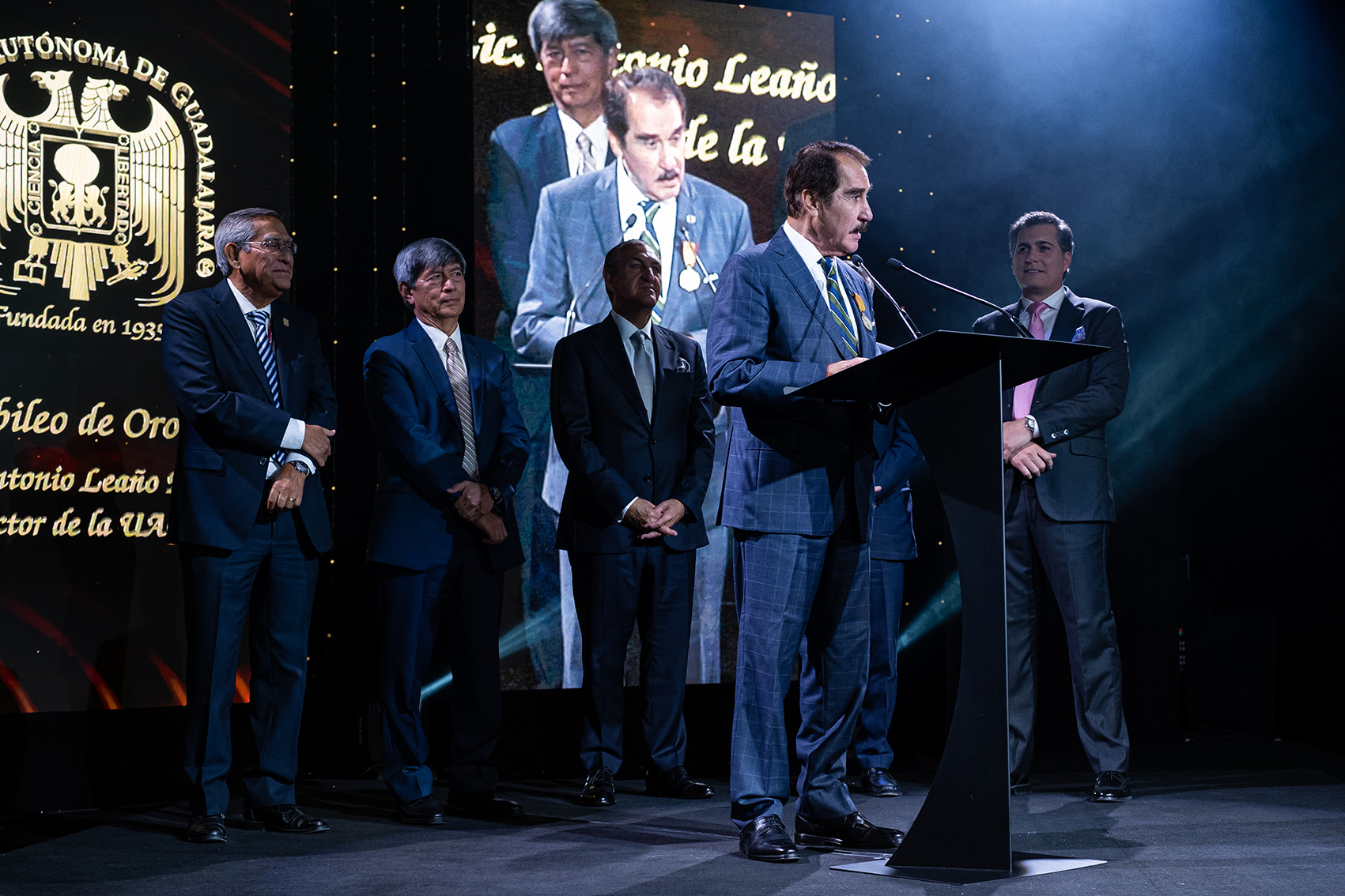 Guadalajara, Jalisco.- Antonio Leaño Reyes, rector de la Universidad Autónoma de Guadalajara (UAG), fue honrado con un reconocimiento en conmemoración de su Jubileo de Oro, celebrando su destacada carrera y legado en áreas de educación, responsabilidad social, innovación y la promoción de valores trascendentes.