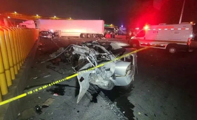 El siniestro aconteció alrededor de las 23:00 horas, en el kilómetro 22 de la autopista en dirección a Puebla. Un tráiler impactó violentamente contra el muro de contención, previamente colisionando con un vehículo que quedó completamente destrozado.