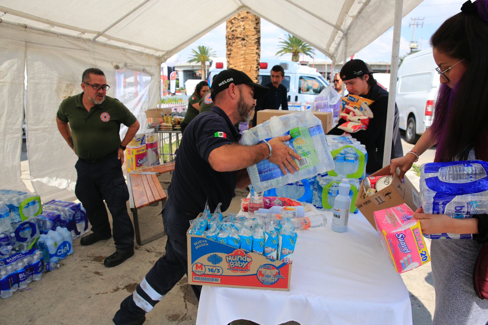 “Quiero destacar la participación de la Asociación de Agentes Aduaneros que acudieron a nuestro centro de acopio a dejar diversos víveres y productos, y también nos ayudarán para la logística y transporte para llevarla al Aeropuerto Internacional de la Ciudad de México”.