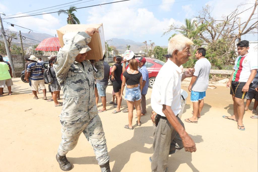 En municipios como Coyuca de Benítez, Atoyac de Álvarez, Ajuchitlán del Progreso, Benito Juárez, Tecpan de Galeana y Petatlán, el personal de la Guardia Nacional mantiene el reparto de víveres a la población afectada. –sn–