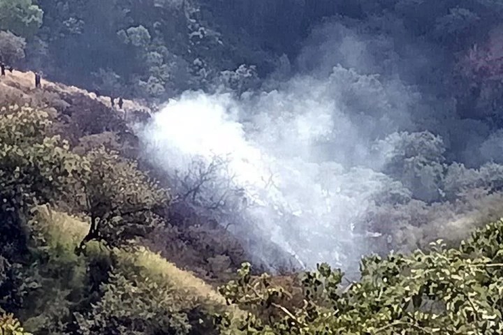 Elementos de seguridad y equipos de rescate ya se encuentran en el lugar, donde una columna de humo se elevó debido al incendio provocado por el accidente de la avioneta. –sn–