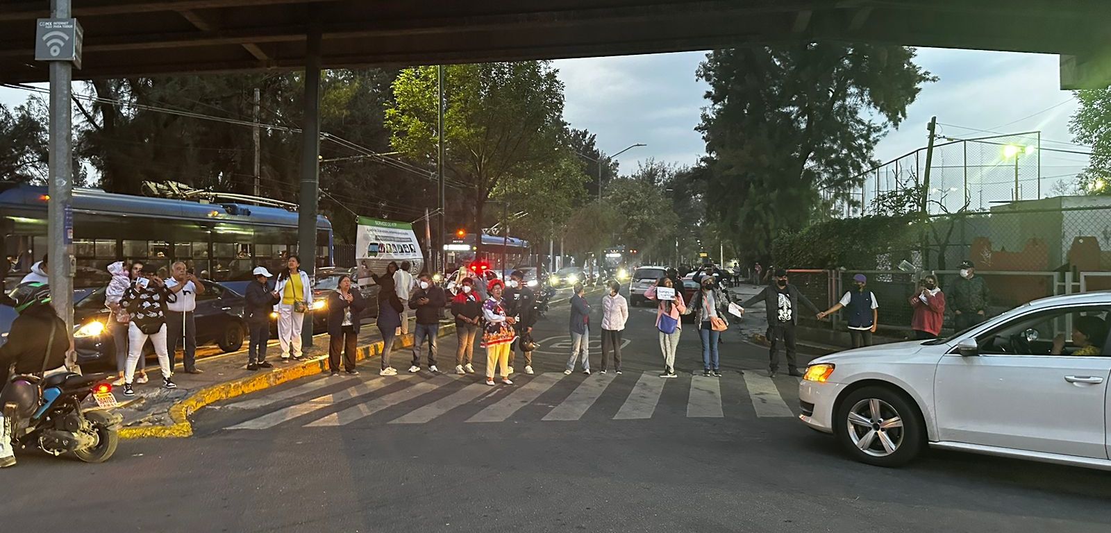 Con bloqueos y protestas, vecinos de la colonia Jardín Balbuena se oponen a la construcción de un paradero de camiones de la RTP en el Velódromo Olímpico.