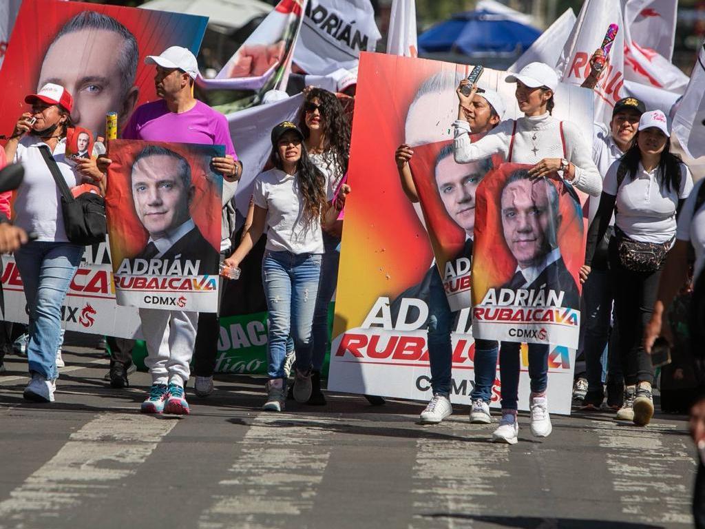 Por una contienda libre y transparente al interior del Frente Amplio por México para la Cdmx, simpatizantes de aspirante Adrián Rubalcava, alcalde de Cuajimalpa con licencia realizaron una movilización de apoyo por las principales avenidas de Paseo de la Reforma.